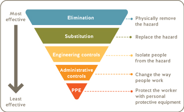 Note that while the controls are listed in order of effectiveness, all five types of controls should be considered by following the hierarchy.